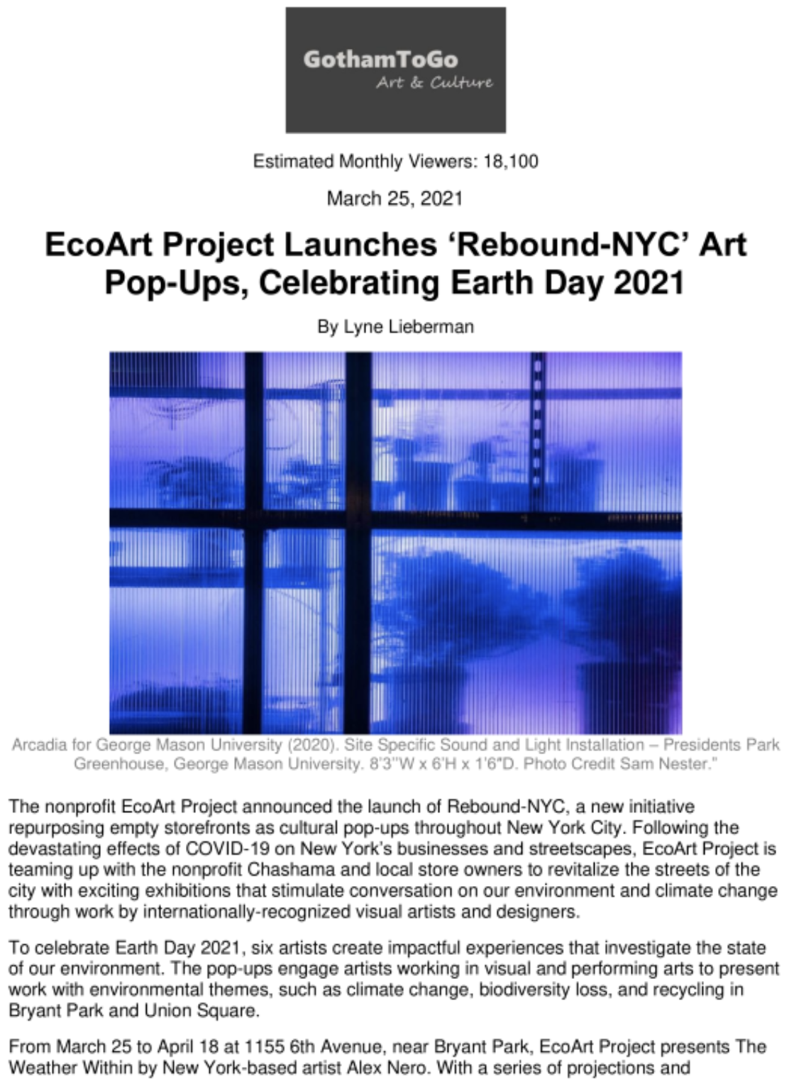 However if there is any likelihood that a temporary artwork will be in place for. The Illuminate Project Collective a collective of New York City-based planners and architects has just installed a digital light installation in the windows of NYS Assembly District. Light installation art nyc.